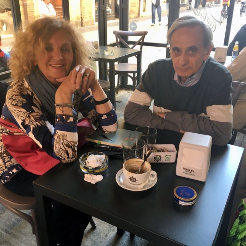 My cousin Francesca Rimondi and my publisher Mario Trombino, just before the presentation of the book at the library Feltrinelli in Ferrara.